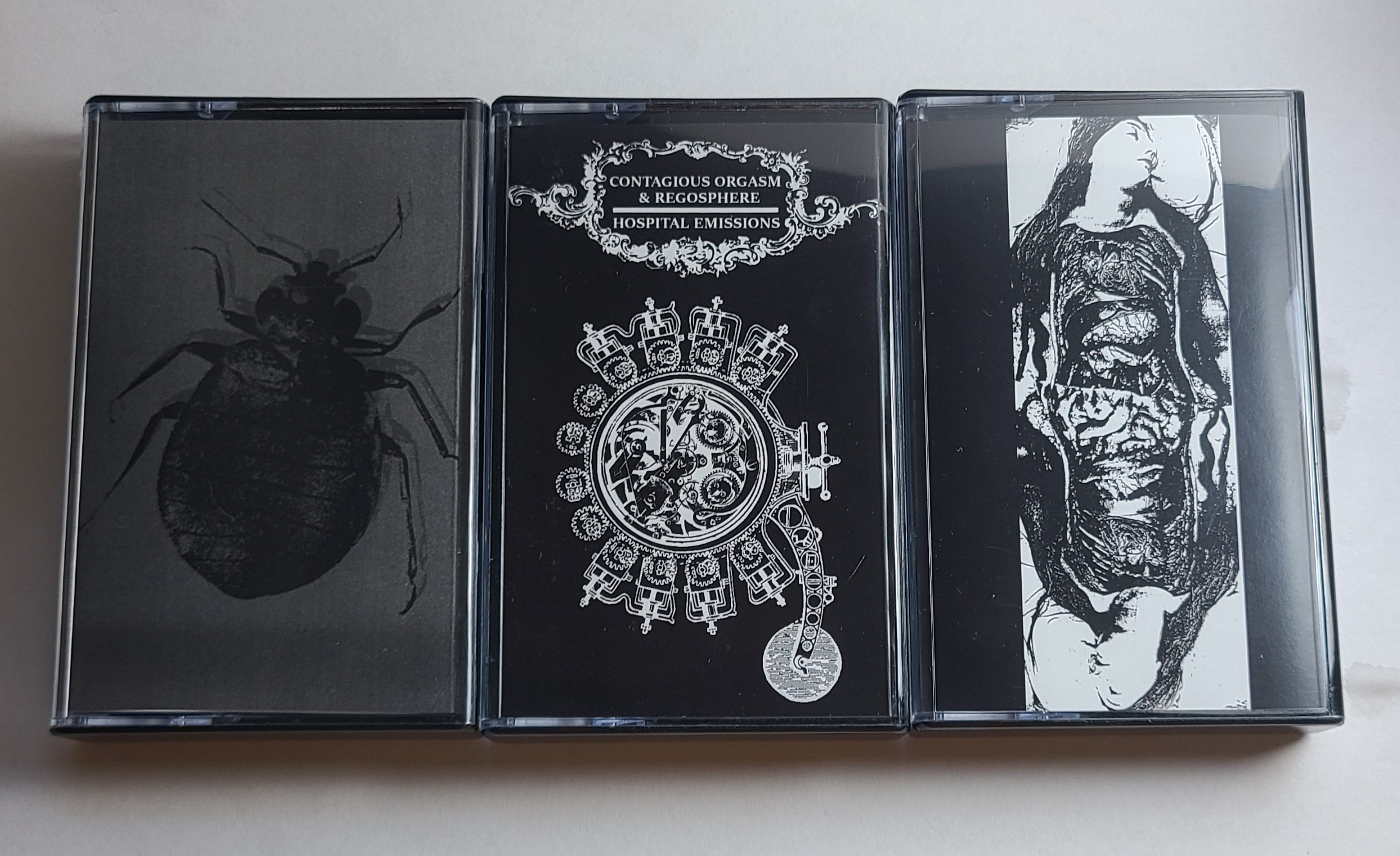 Minóy - "Monkey Blood Injections" - C-60 Cassette Contagious Orgasm & Regosphere - "Hospital Emissions" - C-60 Cassette Regosphere / Ligature Impression - Split - C-30 Cassette